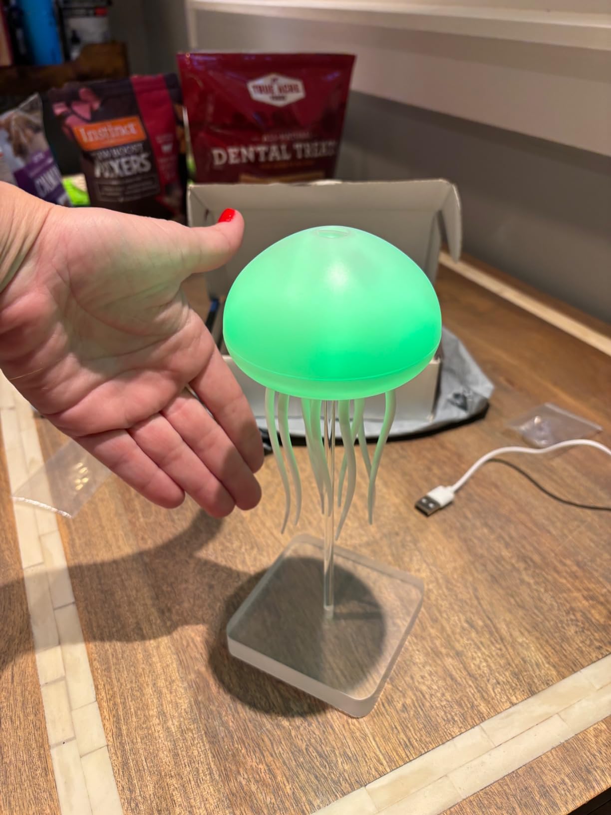 Sí. Está fabricada con materiales seguros, luces LED frías que no generan calor y una base estable. Perfecta para usar en: