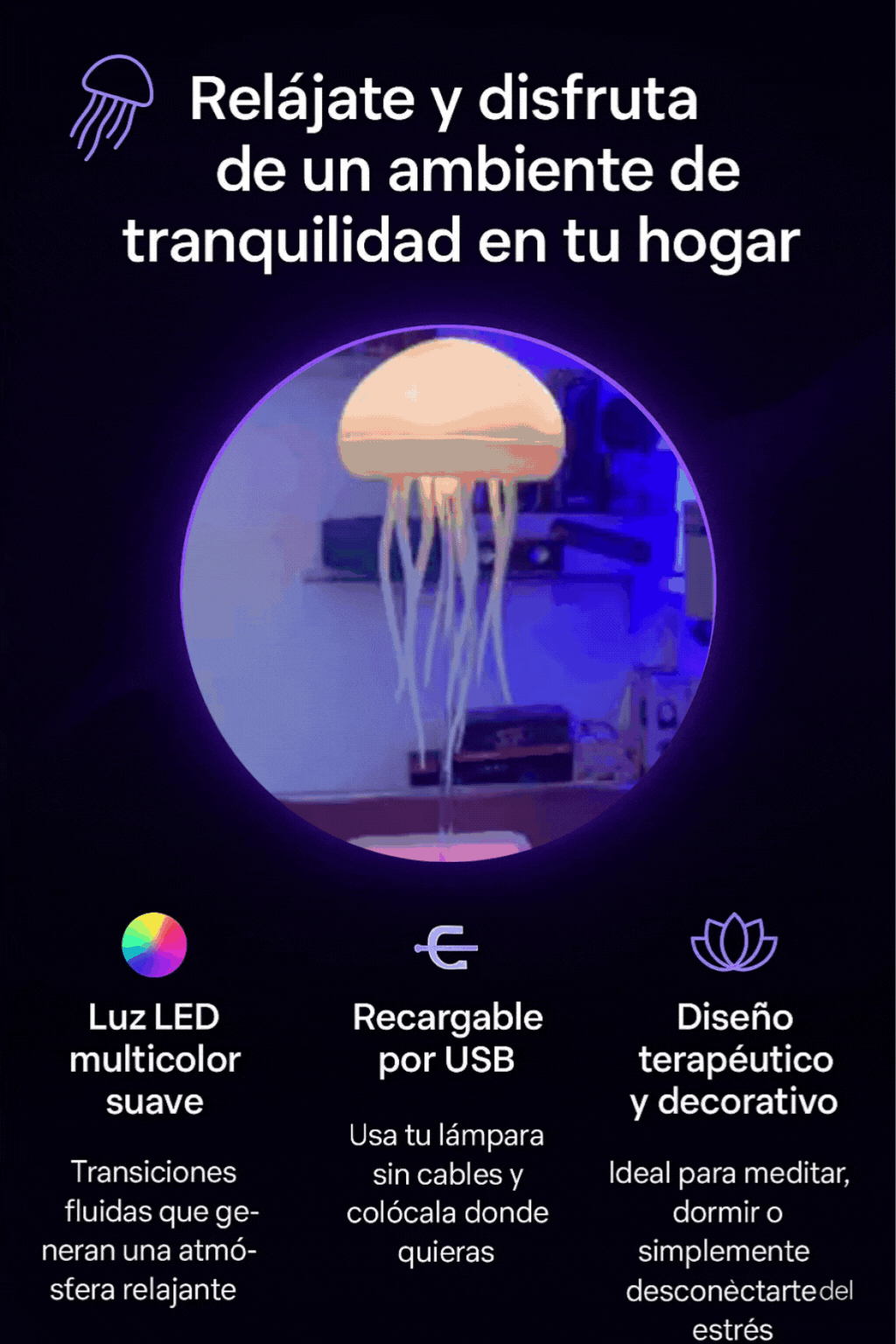 ¡Claro! Su iluminación suave y silenciosa crea un ambiente relajante que ayuda a conciliar el sueño y a reducir la ansiedad visualmente.